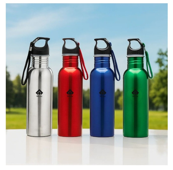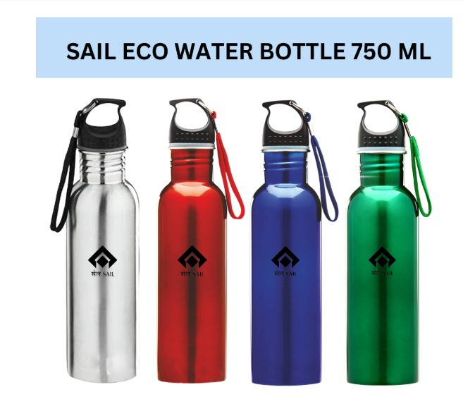 - Stainless Steel Eco Beach Water Bottle, 750ml. This set is available in four colours - Red, Blue, Green and Stainless Steel colours