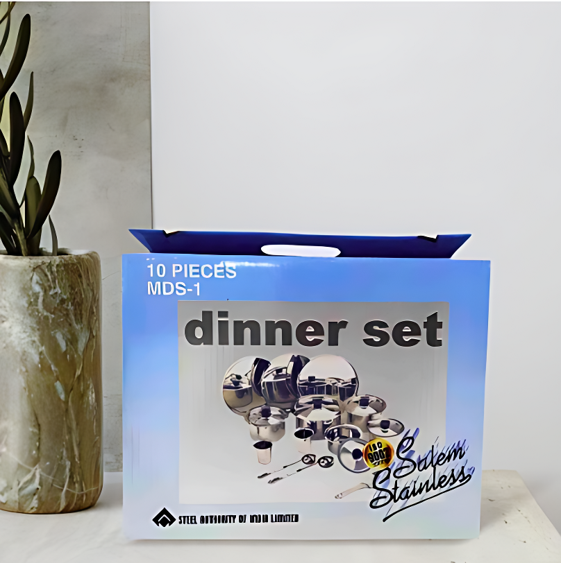 - SAIL SALEM 10 Pc Dinner Set- (Tope Model) is made from guaranteed 304-grade stainless steel and is thus meant to last for generations.