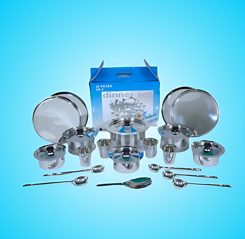 - 20 Pc Dinner Set (Top Model) is a thoughtful assortment of various items necessary in a Dinner Set such as plates, tope models with bakelite knobs, tumblers, etc.