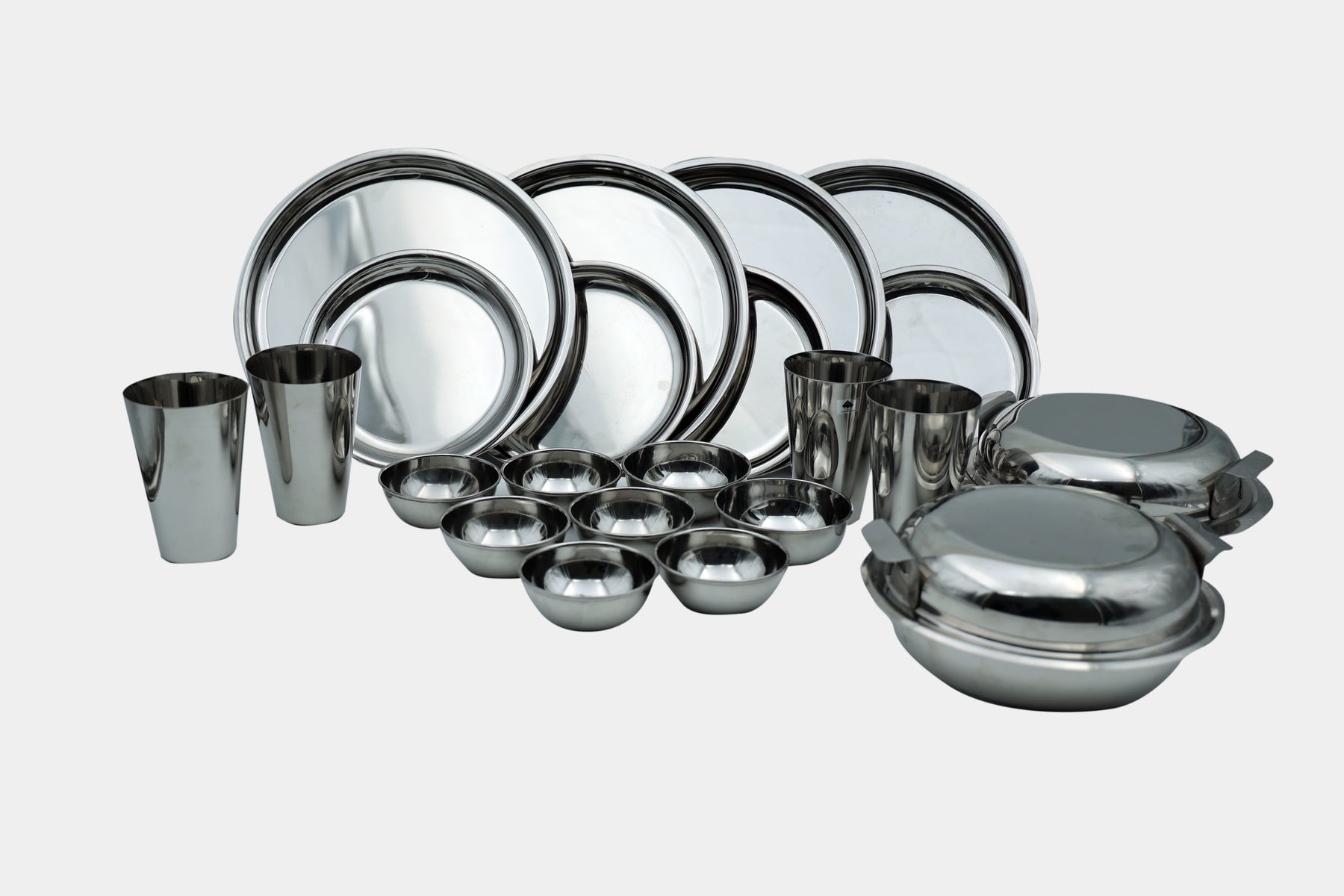 • This dinner set is perfect for a large family or hosting dinner parties. It is made from durable 304-grade stainless steel and is dishwasher-safe, freezer-safe, and stain-free.