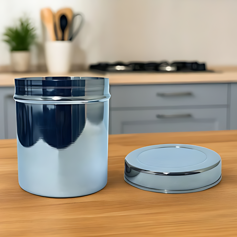 • Crafted from high-quality, 304 grade stainless steel, food-grade stainless steel, it is rust-resistant, rust-free, dishwasher safe, resistant to non-toxic stains or odours, and ensures safe storage for various items. One can easily store dry fruits, snacks, masala, or meal portions without losing their taste.